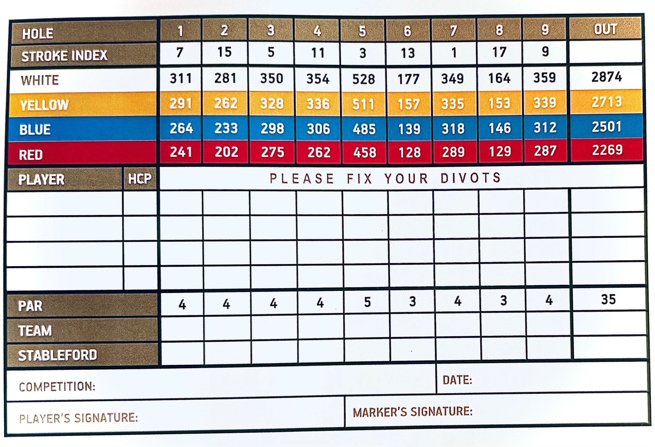 • Please repair pitch marks and replace divots.